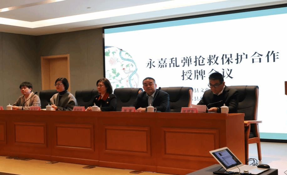 授牌仪式上,温州大学维多利亚老品牌vic3308向永嘉乱弹传习所授温州大学维多利亚老品牌vic3308研究实践基地牌;永嘉县文广旅体局向温州大学维多利亚老品牌vic3308授永嘉乱弹传承基地牌。