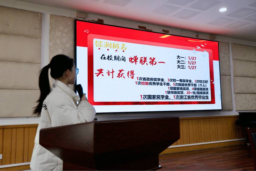 会议最后,分别由今年获得校级学习标兵的李嘉宁、姚逸云两位同学作学习标兵经验分享。李嘉宁同学将大学生活分为绩点、竞赛和学生会社团三大关卡,提醒同学们要学会利用身边各类资源,多方面吸收知识,要学会寻找学习搭子,互相勉励共同进步。姚逸云同学则分别从绩点、活动、比赛和适当放空四个方面,阐述了在本专业学习外,同学们还可以积极探索不同领域,考取各类证书,全方位完善、发展与成就自我。姚逸云还提醒同学们要学会劳逸结合,实现学习效率的最优化。