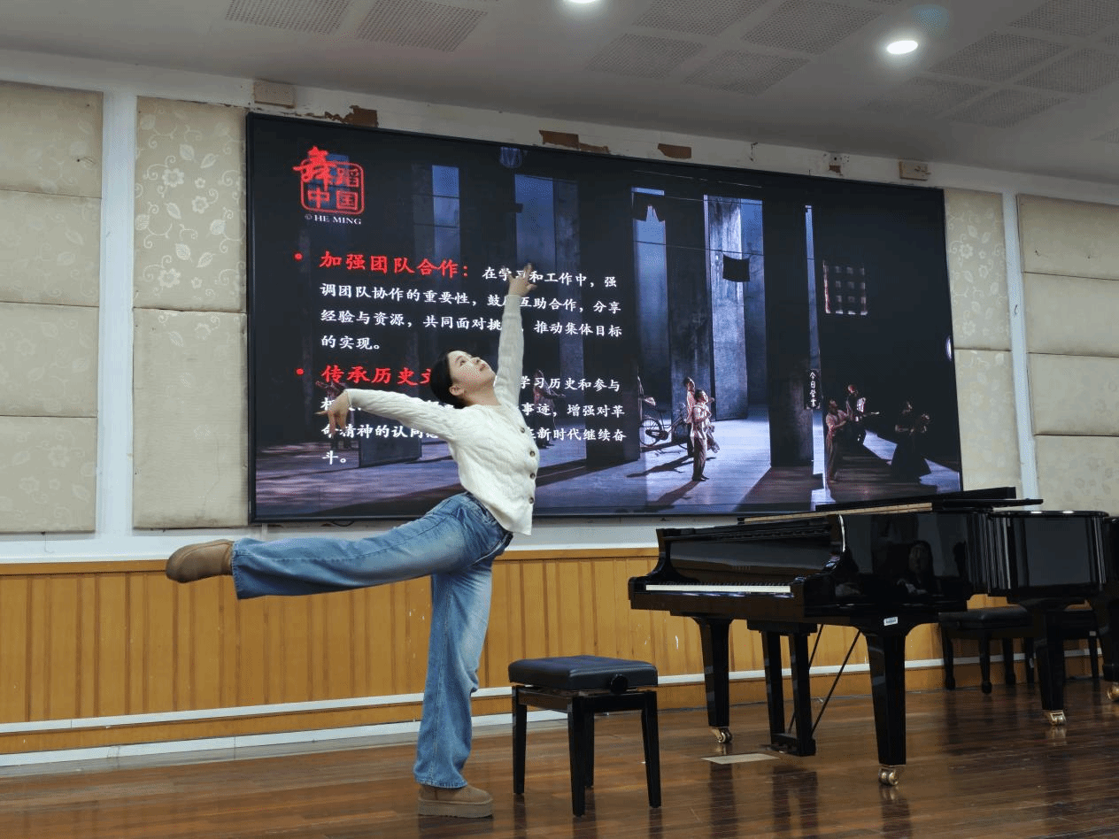 预备党员,22舞教1班林依妍带来舞剧《永不消逝的电波》舞蹈微党课。深入浅出的将该舞剧剧情和舞蹈动作设计语言,提炼该剧丰富的精神内涵,激励青年党员要理想信念、培养奉献精神、增强团结意识和历史责任感。比赛现场,林依妍还现场展示舞剧的舞蹈片段,获得评委和观众的一致好评。